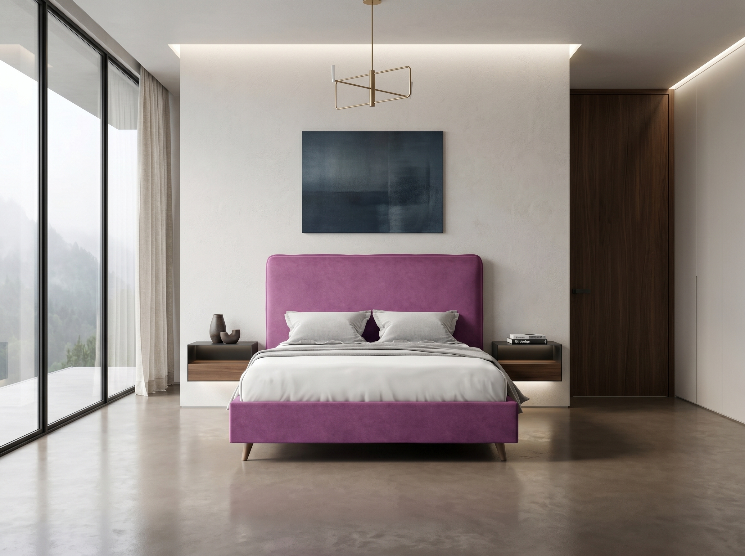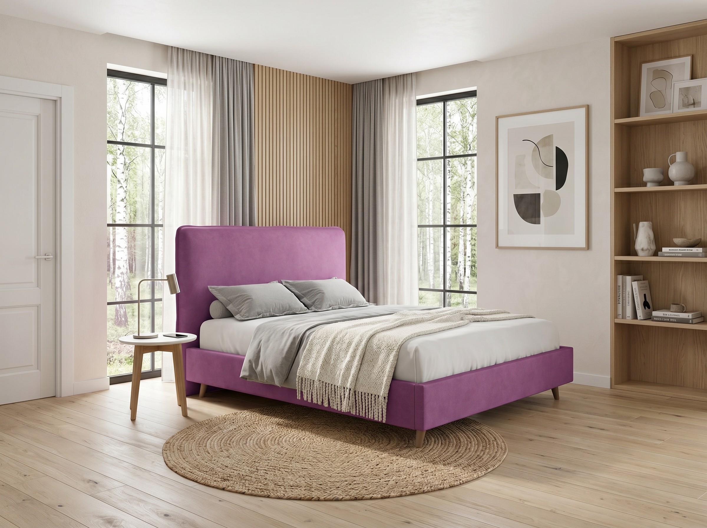 Модель выполнена в стиле неоклассика, имеет мягкие формы располагающие к расслабленному отдыху. Массивное основание на ножках массива и с мягким изголовьем. В комплект входит ортопедическое основание .Материалы используемые в производстве: Брус,МДФ , ЛДСП,ППУ, обивочный материал велюр. Ткань Velutto.
