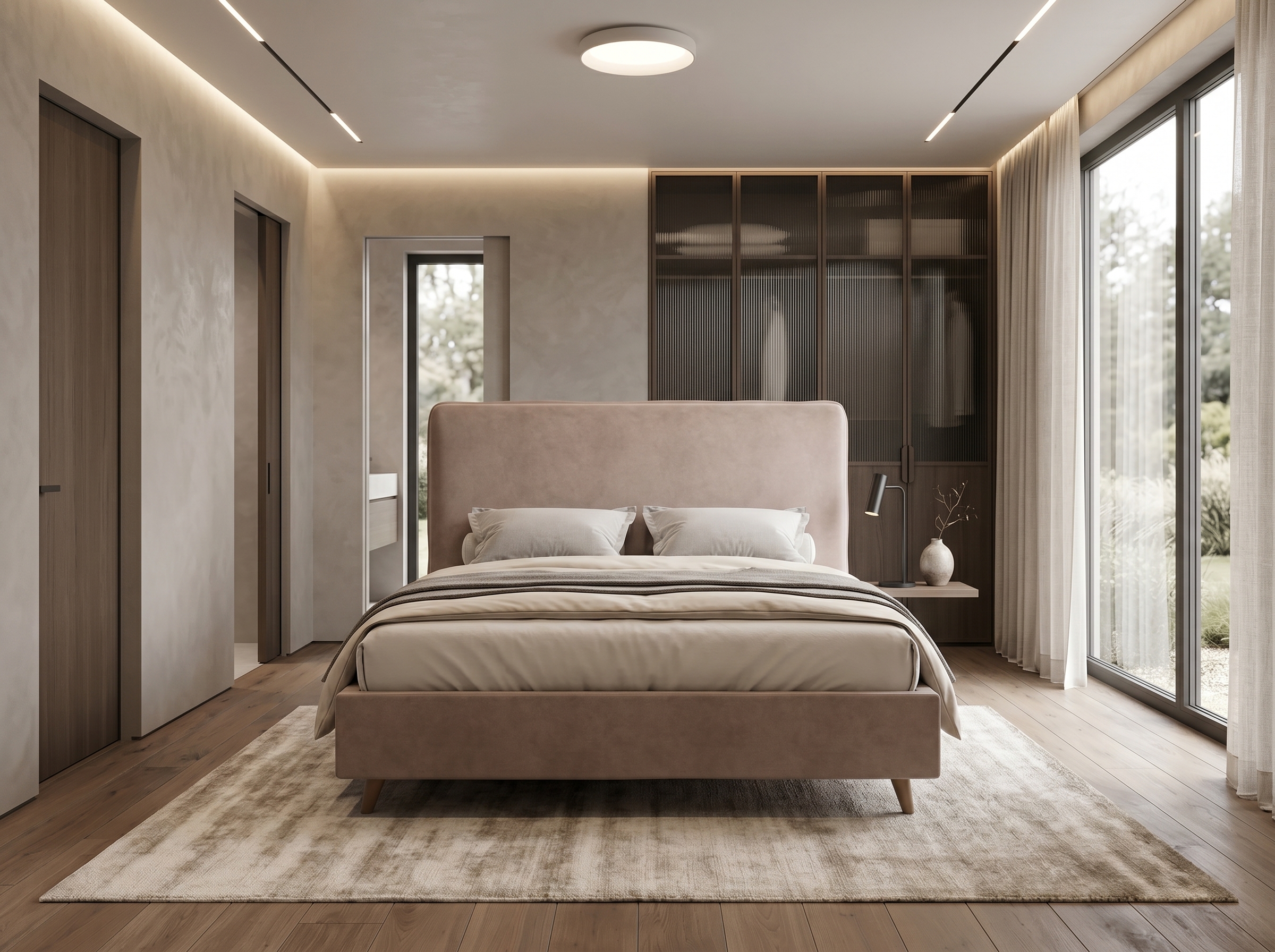 Модель выполнена в стиле неоклассика, имеет мягкие формы располагающие к расслабленному отдыху. Массивное основание на ножках массива и с мягким изголовьем. В комплект входит ортопедическое основание .Материалы используемые в производстве: Брус,МДФ , ЛДСП,ППУ, обивочный материал велюр. Ткань Velutto.